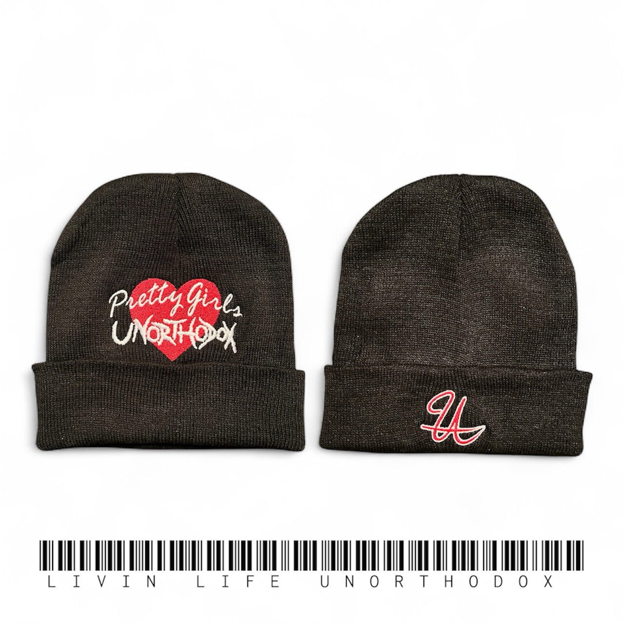 Knit beanie providing comforting warmth with embroidery on the front and back.